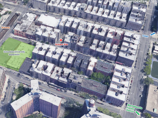 Site is located across the street from Columbia University’s new Manhattanville campus, a 17 acre, multi billion expansion. Columbia, the “rising tide which will lift all boats,” will help revitalize and gentrify this area of Manhattanville for years and decades to come.